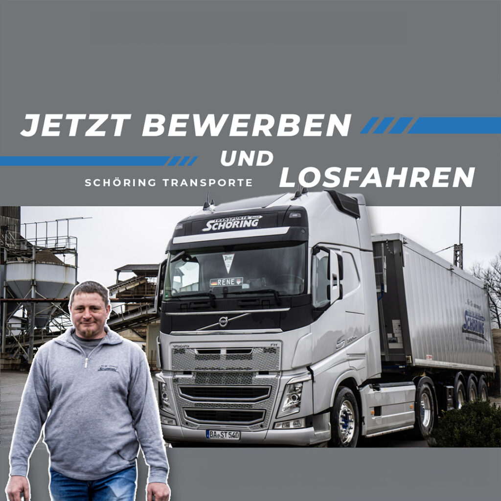 Von der Bewerbung bis zum ersten Arbeitstag: Erfahren Sie, wie einfach es ist, Teil des Teams von Schöring Transporte zu werden. Klar, transparent und unkompliziert!